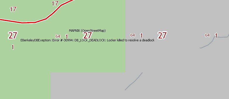 | Description | Распаковал ночнушку, поставил тип кеша по умолчанию Berkeley (не версионный), в режиме "Кеш+интернет", перемещаюсь по карте (кеш пустой) - рано или поздно перестают грузиться тайлы, при попытке переключить слой или масштаб - картинка полностью пропадает. Воспроизводится чуть раньше или чуть позже на любом слое. | ||||||||