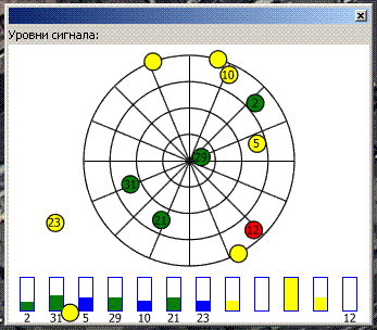 | Description | В окне "Уровень сигнала" отрисовано несколько спутников, явно находящихся ниже горизонта. | ||||||||
