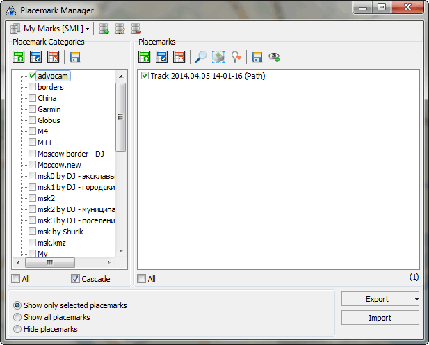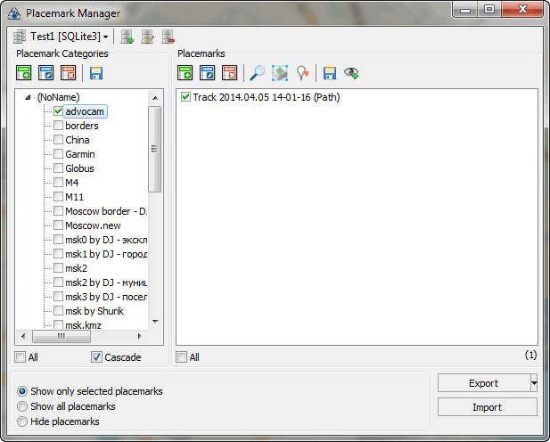 У меня получилось два лога. Они в архиве. Насчёт "Это не так". Действительно, если при экспорте выбрать все метки (независимо от видимости), то не должно быть таких, которые экспортировались, хотя не должны были. Все были должны. И, если исходить из обозначенной логики процесса, в данном случае всё происходит правильно. Неправильно начинает быть потом, когда мы вручную пытаемся установить видимость нужных нам меток. PS Два лога - это не всё. Получил ещё третий. Первый - сразу после экспорта БД. Программу закрыл, затем снова открыл. Подключил БД SQLite. Все метки отмечены как видимые (это правильно). Убрал галки со всех и установил на две, которые нужны. Программу закрыл. Появился второй лог. Снова открыл программу. В списке меток отмечено не две, а значительно больше (но не все). Закрыл программу. Появился третий лог. Логи в архиве Логи.zip. |