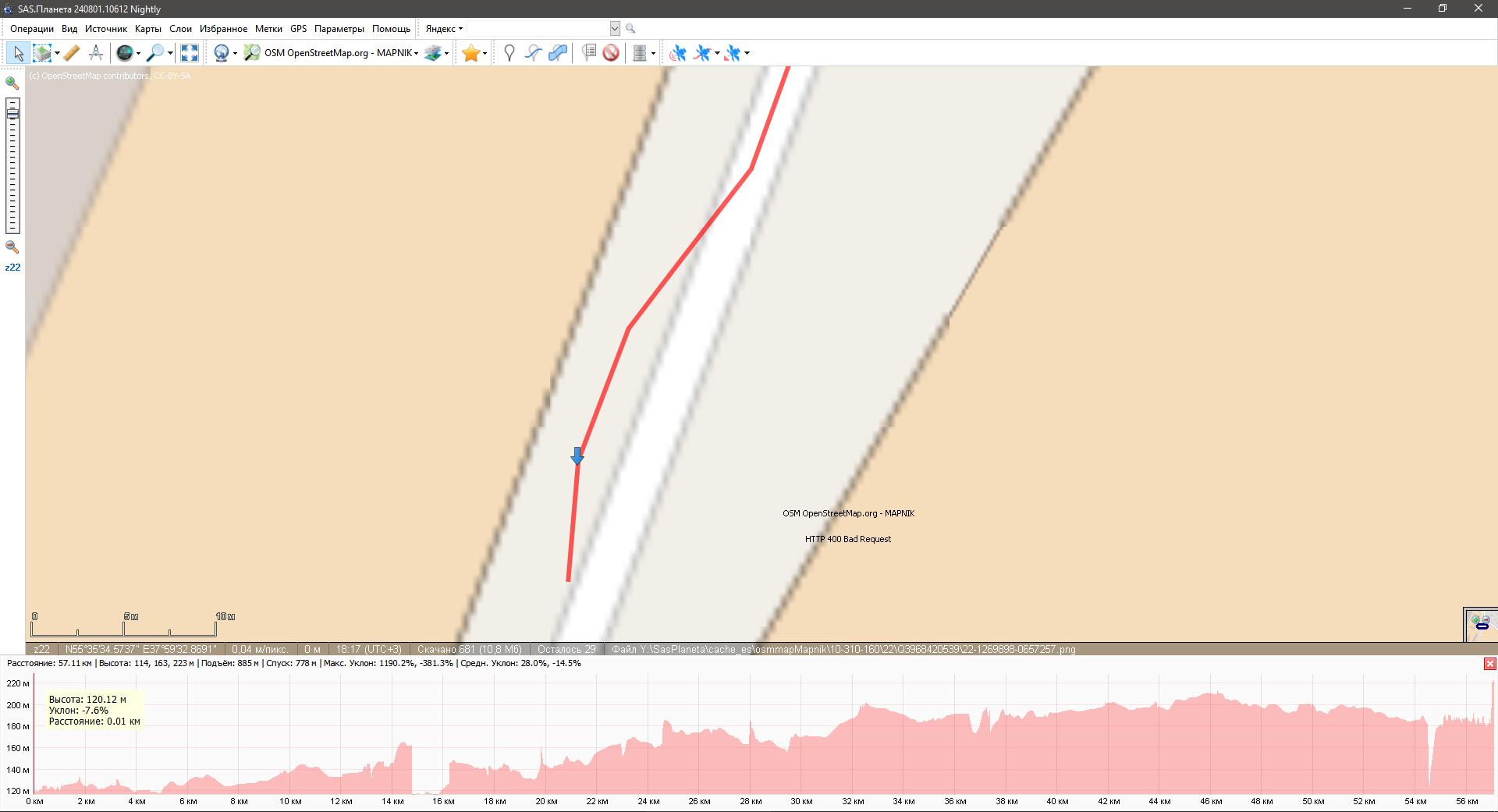хм... Обновил приложение. При нажатии CTRL и наведении мыши - ничего. При CTRL + щелчок ЛКМ появляется окно снизу. см.скрин Думаю, что должно быть примерно как на sas3. PS Смотрю другой трек - с ним все в порядке, показывает как надо. (картинка sas5). Треки записаны на одном устройстве и одной программой osmand. В GPSMAPEDIT отображается нормально со всеми параметрами, что необходимы для информации. В SAS - я уже указал выше. Не понимаю в чем подвох? PS2 и почему трек из той же группы (та же программа записи, тот же формат и т.д.) отображаются не полностью (картинка sas6), либо вообще без информации? Экспортирую треки из SAS (в один файл), смотрю в GpsMapEdit - все данные отображаются (дата, время, скорость, высота) |