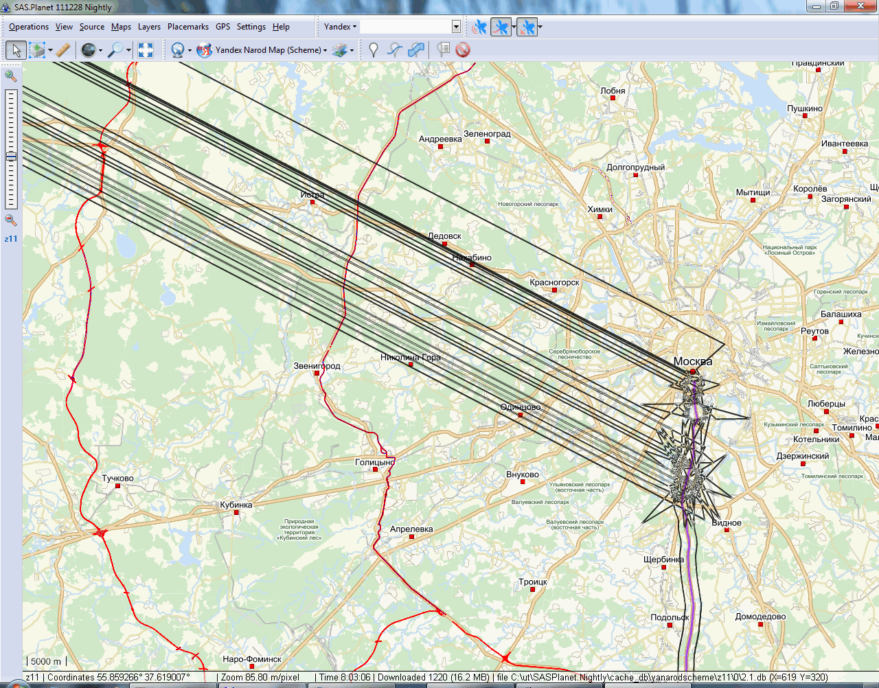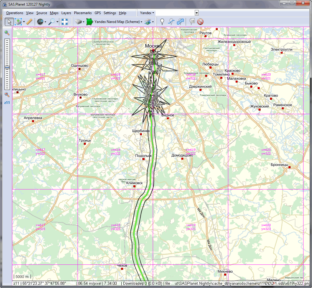 Проблема не решена. Тот же трек track041.gpx, то же выделение шириной 1000 м, в результате нечто, напоминающее салют. Но уже не простирается до бесконечности. Версия 4915. Картинка 2012-01-27_083402.png |