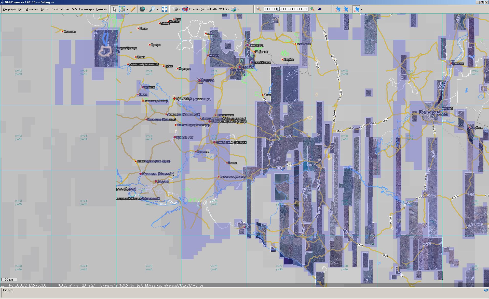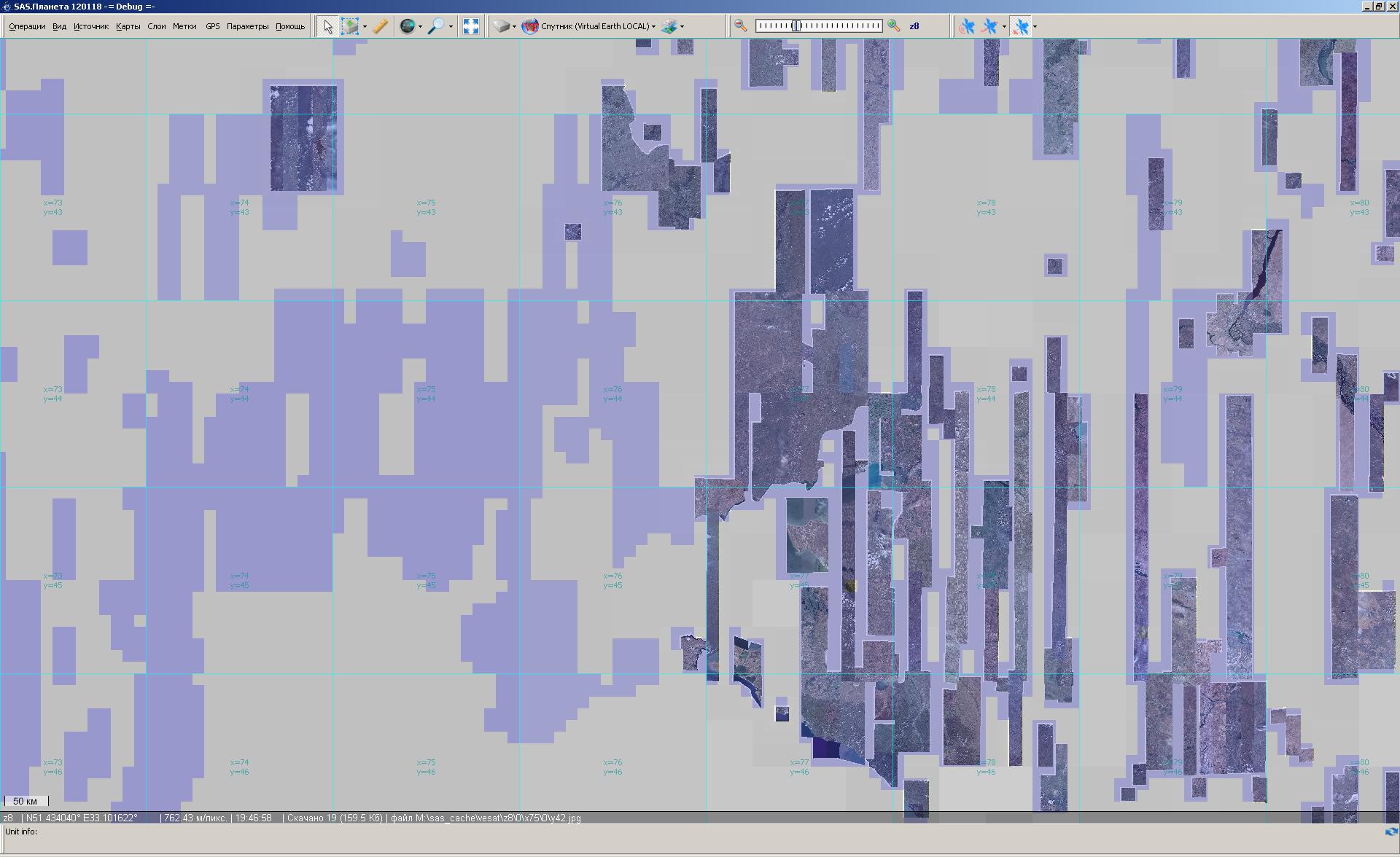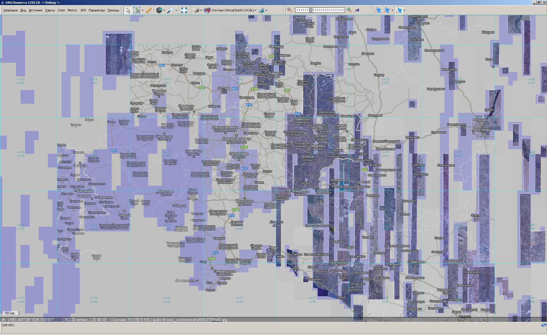 Картинка в посте полностью обясняет смысл этого странного глюкобага. http://sasgis.org/forum/viewtopic.php?f=13&t=1001&start=30#p26140 Там где есть тайл бинга на 7-м зуме - слой показывается фиолетовым. Там где нет тайла бинга на 7-м зуме - слой показывается серым (например, запад Украины). Если открыть тайл слоя с 7-го зума из кэша в AcdSee - видно, что собирается он корректно - из фиолетовых квадратиков. Если переключиться за гугл или яндекс, для которых в этом месте есть тайл - слой начинает показываться правильно фиолетовым. Уж и не знаю как ещё подробнее написать. |