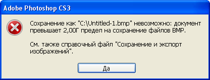 Для 24-битных BMP получаем лимит: 26754x26754 pix (= 2Gb). |