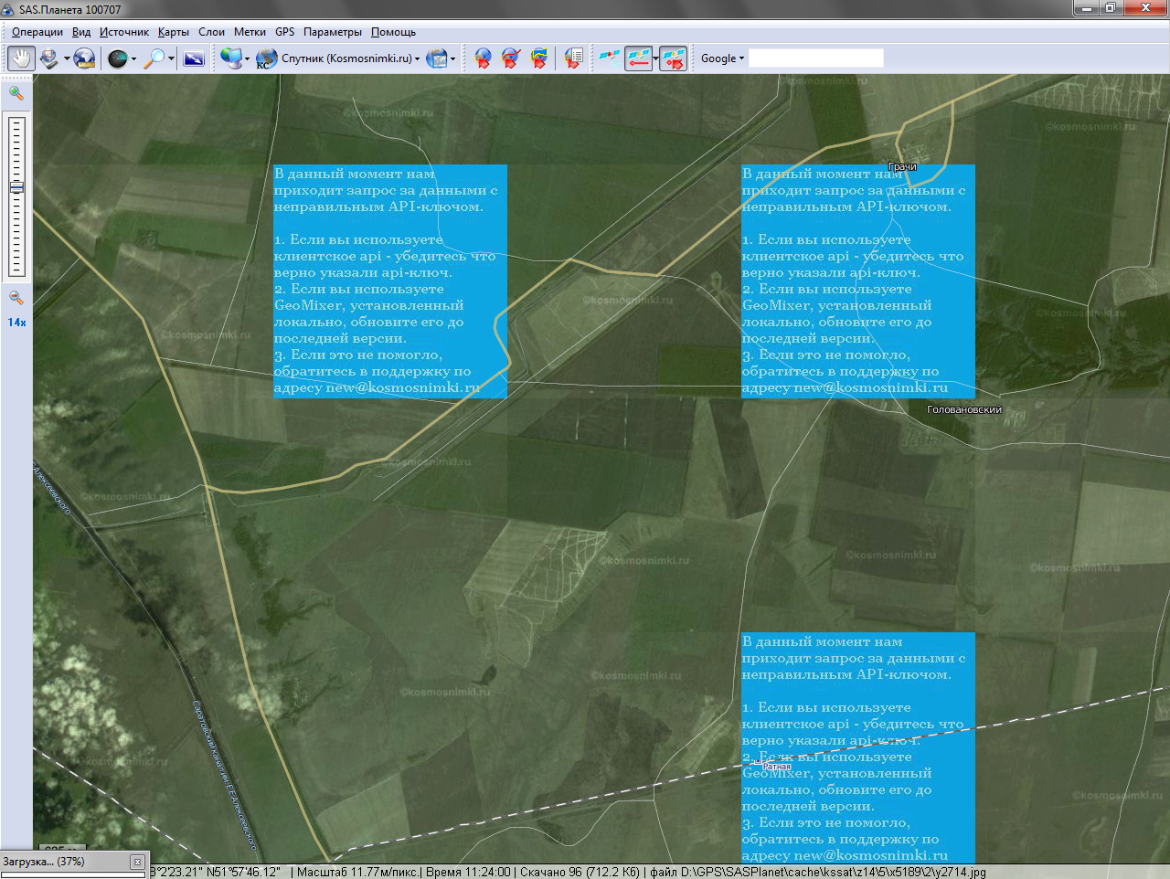 | Description | При загрузке тайлов из космоснимков проскакивают вот такие тайлы. Повторная загрузка, решает проблему. Это так и должно быть или что то нужно изменить? | ||||||||