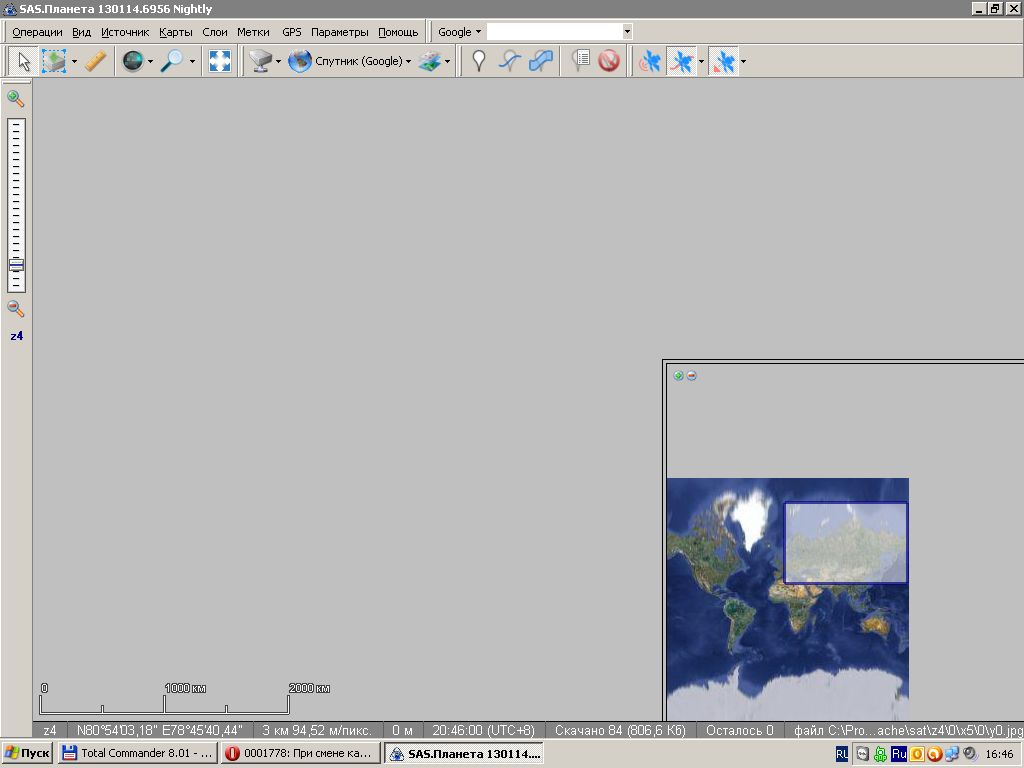 Я как раз и пробую 130114.6956 Вот смотрите переключился на гугл спутник. (Скрин) Обзорная карта есть а самой карты нет. Если пошевелить карту она тоже появится |