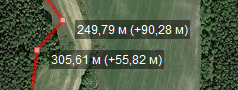 Отображаемое сейчас расстояние это не расстояние между точками, а расстояние между началом и конкретной точкой. А вот чтобы получить расстояние между двумя соседними точками, надо считать в уме. Но лучше добавить опцию, чтобы это расстояние выводилось рядом или даже вместо того расстояния, что выводится сейчас. Так что переотрою тикет и займусь этой опцией. Пример на скриншоте в аттаче (расстояние +55,82 - это расстояние между двумя показанными точками). |