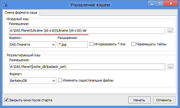 Использование получилось немного неочевидным - в поле, куда раньше вводился путь нужно ввести полное имя архива и что немаловажно, указать правильный формат тайлового кэша, который лежит в архиве. Пока что поддерживает только tar, но в будущем, возможно и zip заработает. |