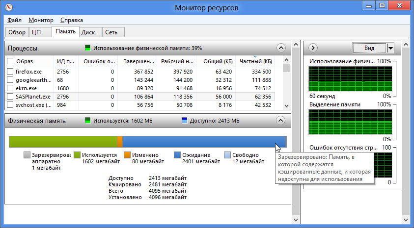 Т.е. вас беспокоит, что там показывает монитор? Да пускай хоть 100500% показывает, если всё работает и другие программы не падают, то всё нормально. >Но SAS, можно сказать, вообще не работает. Prefetch накапливает статистику с прошлых запусков программы и выполняет упреждающую загрузку данных с диска в память, даже если только что запущенная программа ничего не пытается читать. >объём занятой под приложения памяти гораздо меньше, чем об этом сообщает Диспетчер задач на вкладке Performance Ну т.е. это баг windows :) |