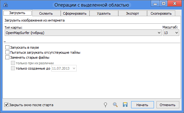 Я ещё подскажу глючок: если сменить язык при этом открытом окне, то опять "не отображается размер области выделения и количество тайлов для загрузки". |