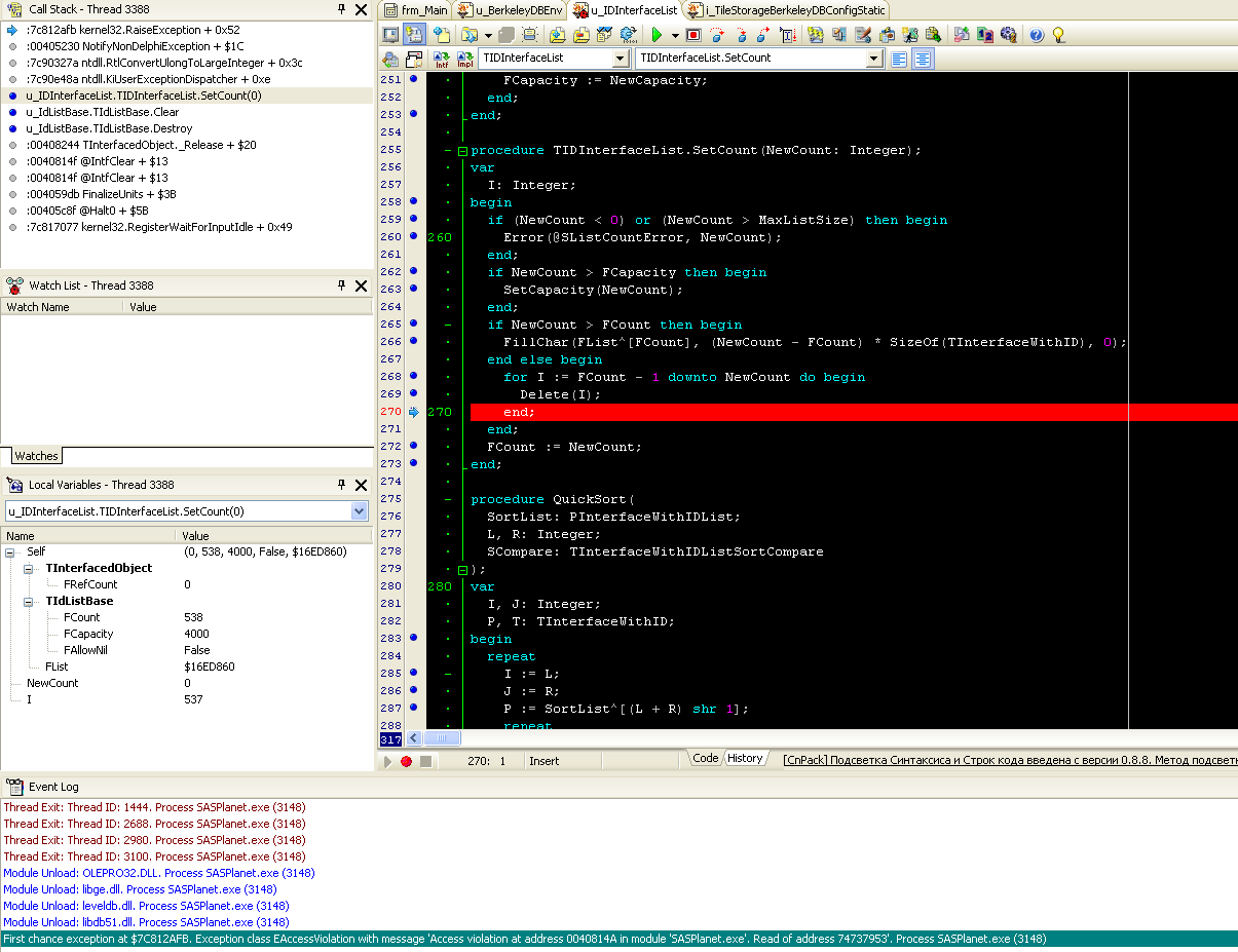 | Summary | 0002118: AV при попытке открыть окошко с DedugInfo | ||||||||