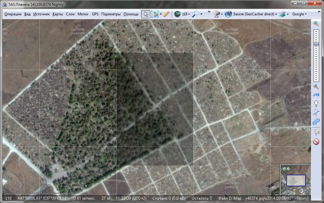 Это не баг. Просто эта сетка показывает границы тайлов текущей отображаемой проекции, а не активной карты. Для GE/GC эти проекции не совпадают. В то же время карта заполнения показывает наличие именно тайлов конкретной карты. Так что сетка и карта заполнения не обязаны совпадать. |