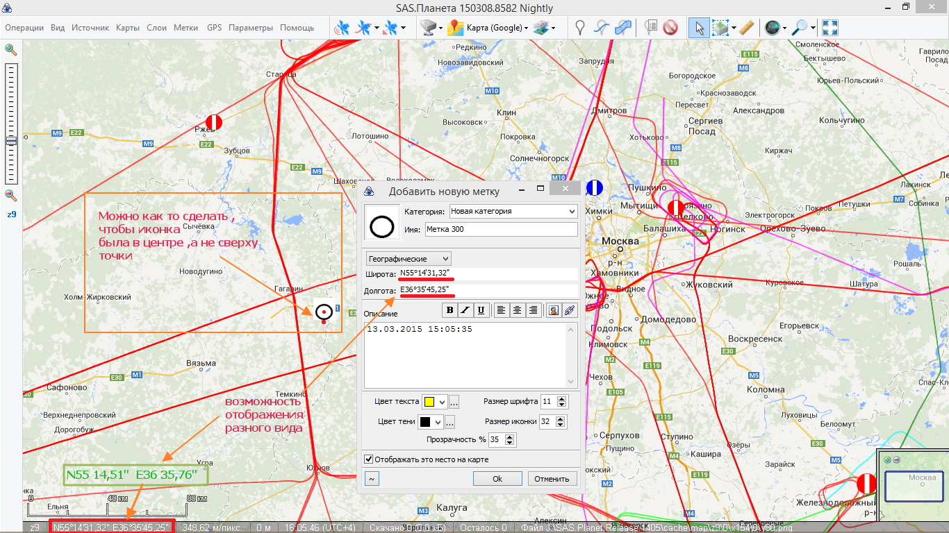 | Summary | 0002659: Вид координат и вид метки в центе точки | ||||||||