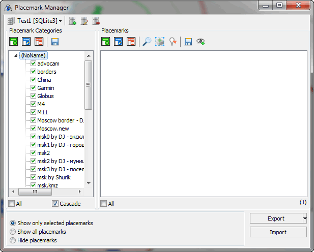 У меня получилось два лога. Они в архиве. Насчёт "Это не так". Действительно, если при экспорте выбрать все метки (независимо от видимости), то не должно быть таких, которые экспортировались, хотя не должны были. Все были должны. И, если исходить из обозначенной логики процесса, в данном случае всё происходит правильно. Неправильно начинает быть потом, когда мы вручную пытаемся установить видимость нужных нам меток. PS Два лога - это не всё. Получил ещё третий. Первый - сразу после экспорта БД. Программу закрыл, затем снова открыл. Подключил БД SQLite. Все метки отмечены как видимые (это правильно). Убрал галки со всех и установил на две, которые нужны. Программу закрыл. Появился второй лог. Снова открыл программу. В списке меток отмечено не две, а значительно больше (но не все). Закрыл программу. Появился третий лог. Логи в архиве Логи.zip. |
