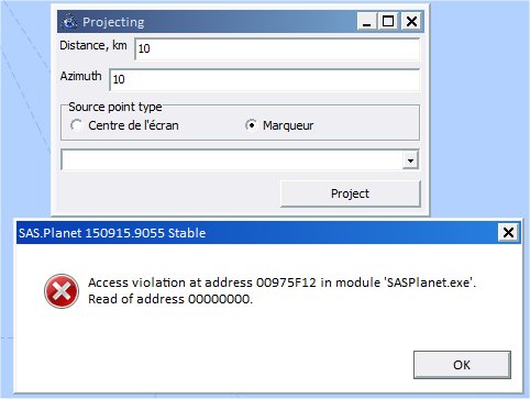 | Description | Same bug as in "Go To..". Open the window "Placemarks", "Project Point" then "Projecting". If there is no marks registred, message of error when clicking in the window after choice marks. | ||||||||
