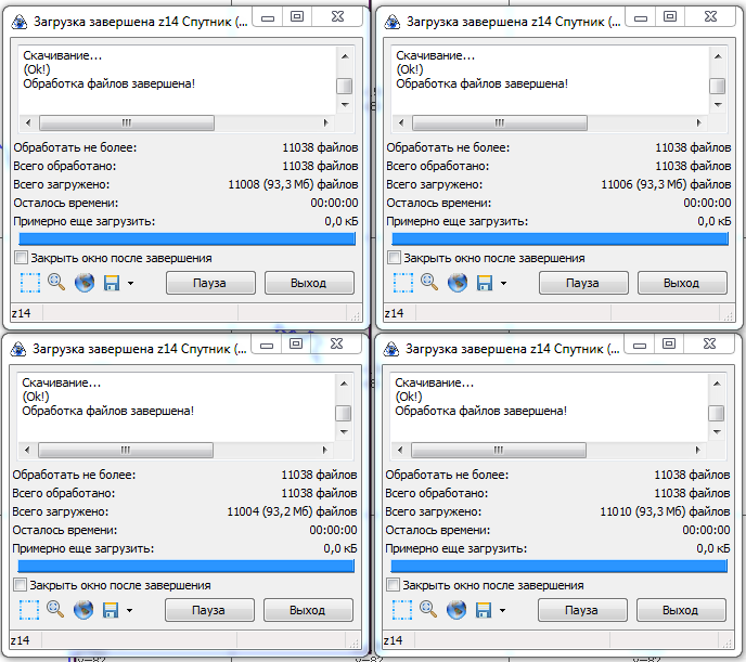 | Description | Если скачивать одну и ту же выделенную область в несколько потоков, то количество скачанных файлов в каждом из потоков по окончании скачивания получается примерно равным количеству файлов для обработки. Таким образом, общее количество скачанных файлов получается равным количеству потоков скачивания, умноженных на количество файлов для обработки. Если это соответствует действительности, то мы скачиваем в разы больше файлов, чем нужно. Если всё не так, то неправильно подсчитываются скачанные файлы. Пример на картинке. | ||||||||