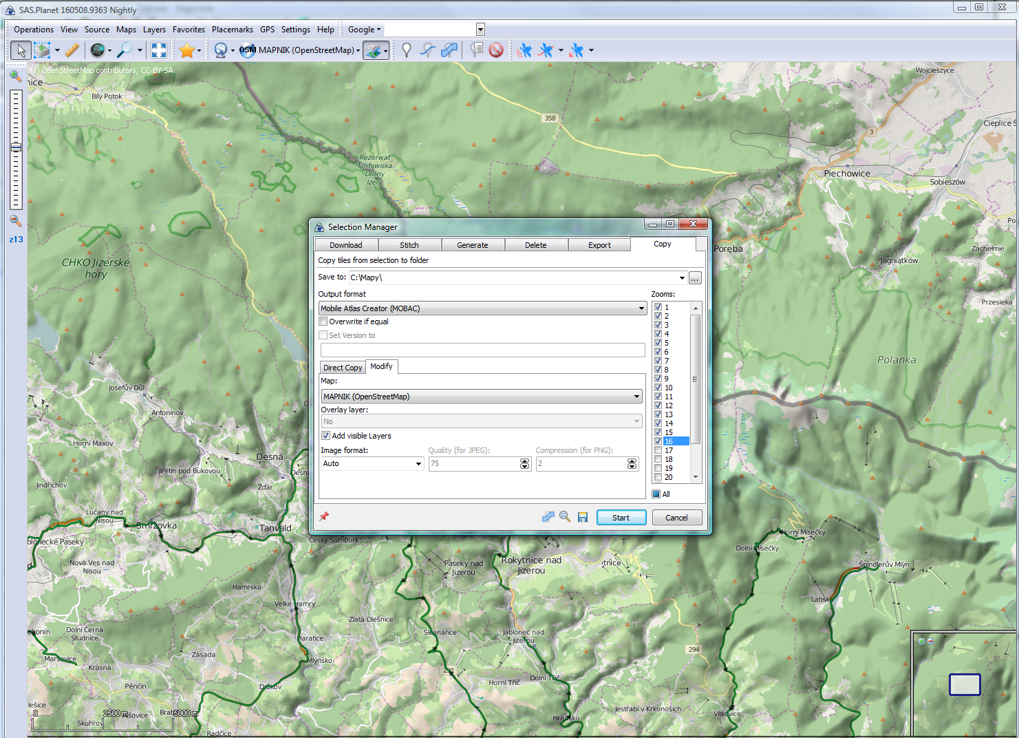 Yes, but how is then possible to export the region as tiles for MOBAC if not used COPY? Now I have to select the region, press download and download the tiles into cache before export - it is not as smart.. I just need to make the copy to selected folder of the map I set before.. More - I have to make it for all the layers also.. I think the behavior should then be changed - because - why is there the button "Source" if just the cache works? And more - it really seems like a bug - imagine that you are watching your map and move some parts, zoom etc, then you like the setup and like to export (save) it into a folder.. You are then very surprised that not complete map is saved - just some tiles from zoom level e.g. 14, few tiles from 13, and 12 and etc.. What you may then think of it?? :) I think it is a bug.. |