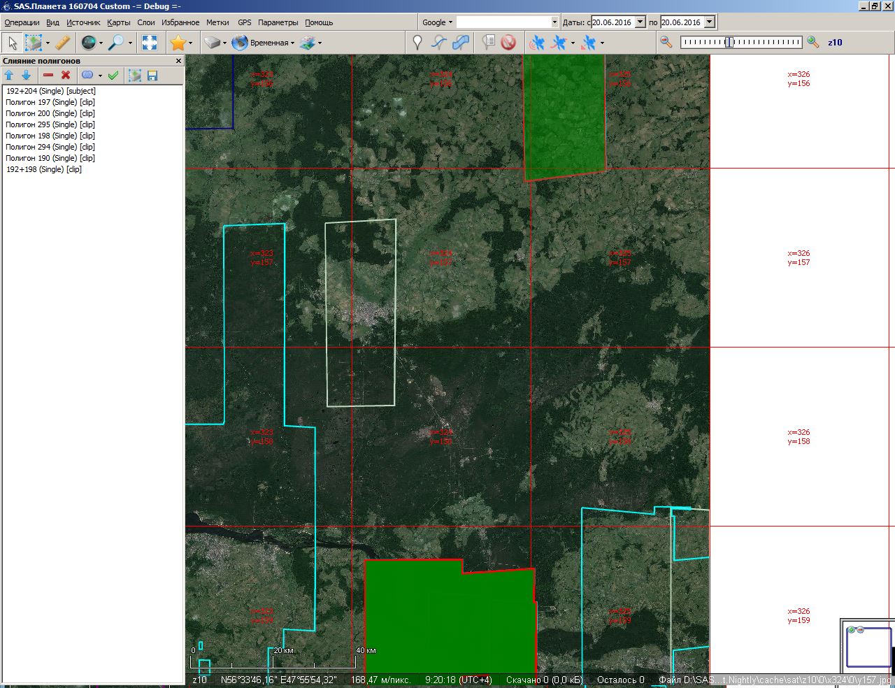 | Additional Information | На разных масштабах полупрозрачность заливки склееного полигона меняется. (заметно при переключении 11<->12) Или это только кажется? | ||||||||