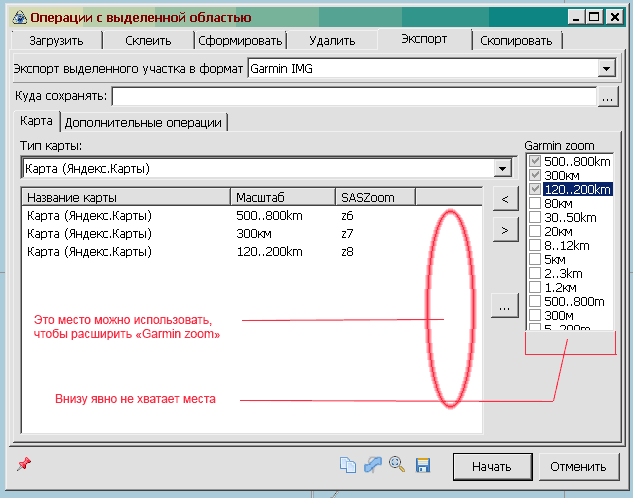 очень даже можно жмякаем на кнопку [...] и затем выбираем соответствие зума САС и зума гармина даблкликом по зуму можно менять зум сас (это надо сделать понятнее) |