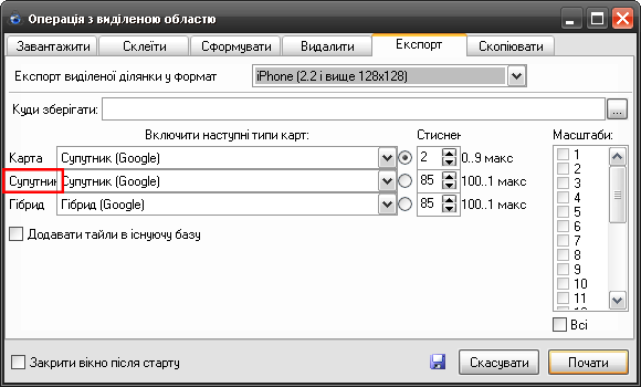 | Summary | 0000322: [Украинская локаль] Не помещается фраза „Супутник“ во вкладке „Експорт“ окна „Операція з віділеною областю“ | ||||||||