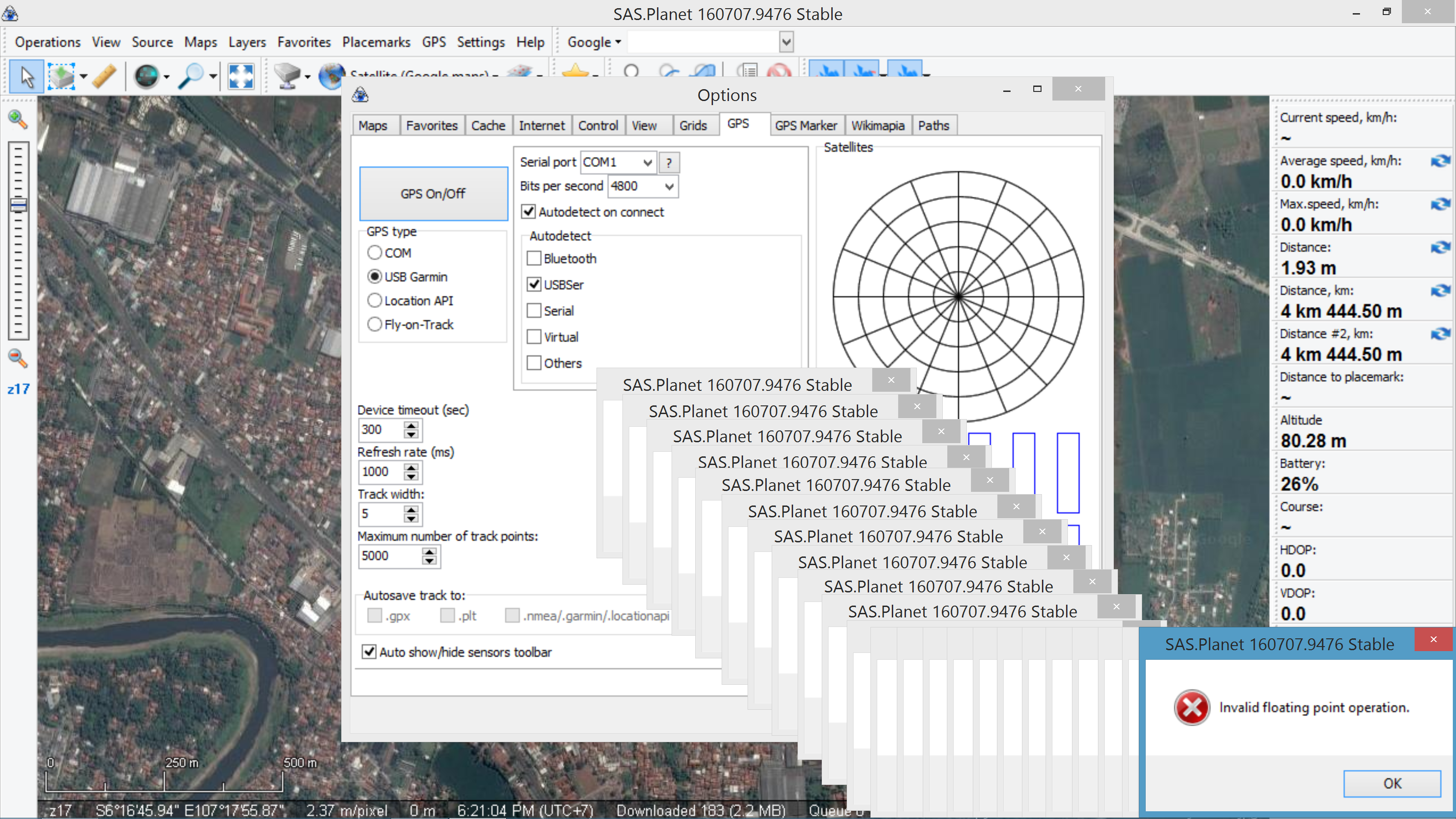 | Steps To Reproduce | Connect GPS to application. Play around a bit. It sometimes happens almost immediately after connecting, sometimes it takes a little while. | ||||||||