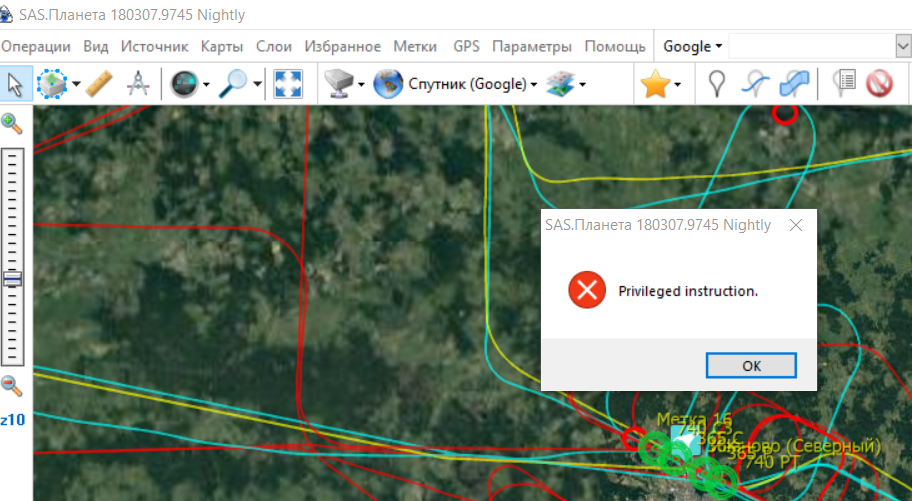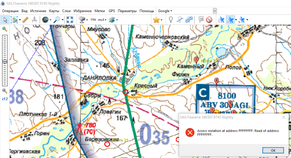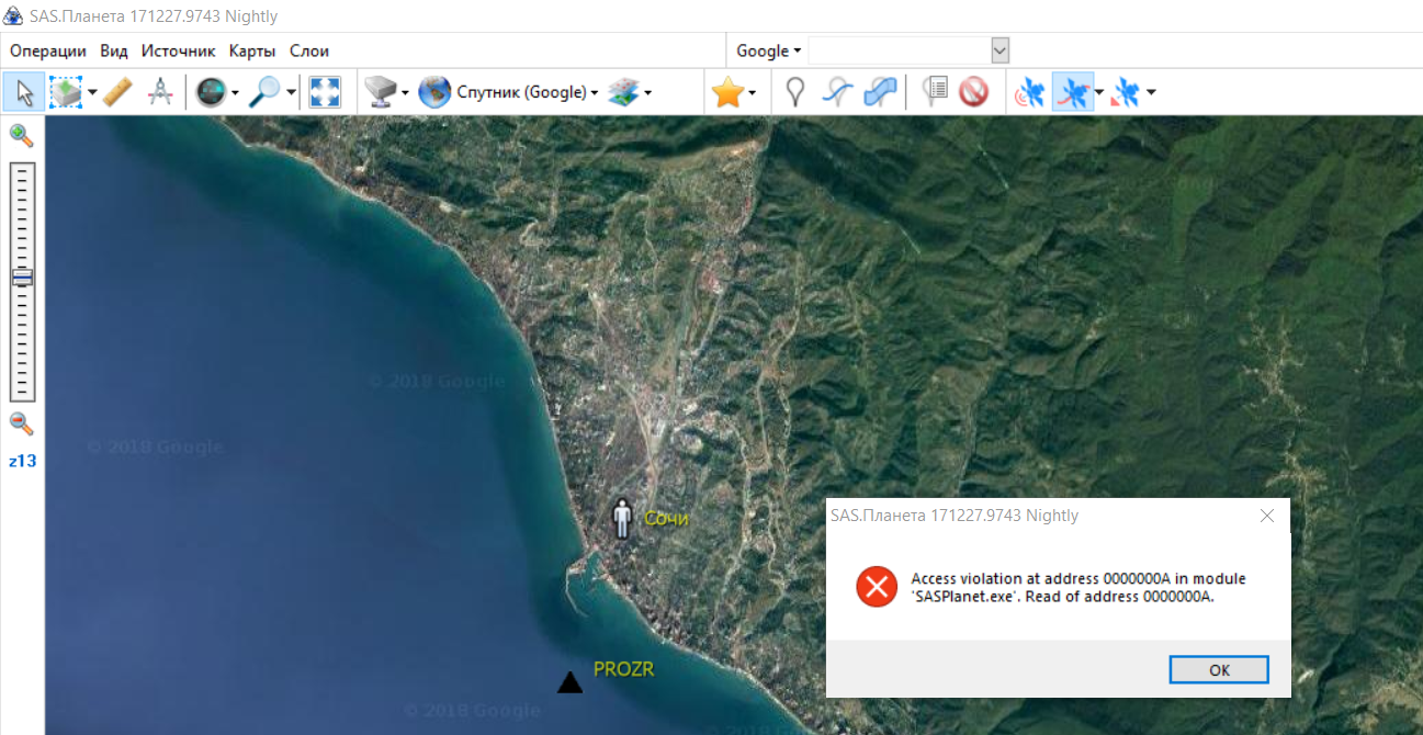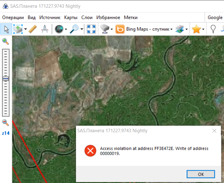 Запустите дебажную версию (SASPlanet.NonUnicode.Debug.exe), воспроизведите ошибку, пришлите лог файл (*.elf) с ошибкой. Скриншоты в этом случае бесполезны. |