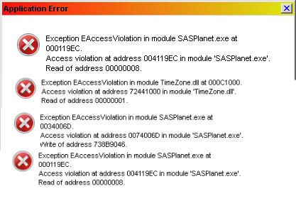 Не пойдёт. 0. Скачать крайнюю ночную версию; 1. Запустить SASPlanet.NonUnicode.Debug.exe; 2. Воспроизвести ошибку; 3. Приложить создавшийся *.elf файл с логом. |
