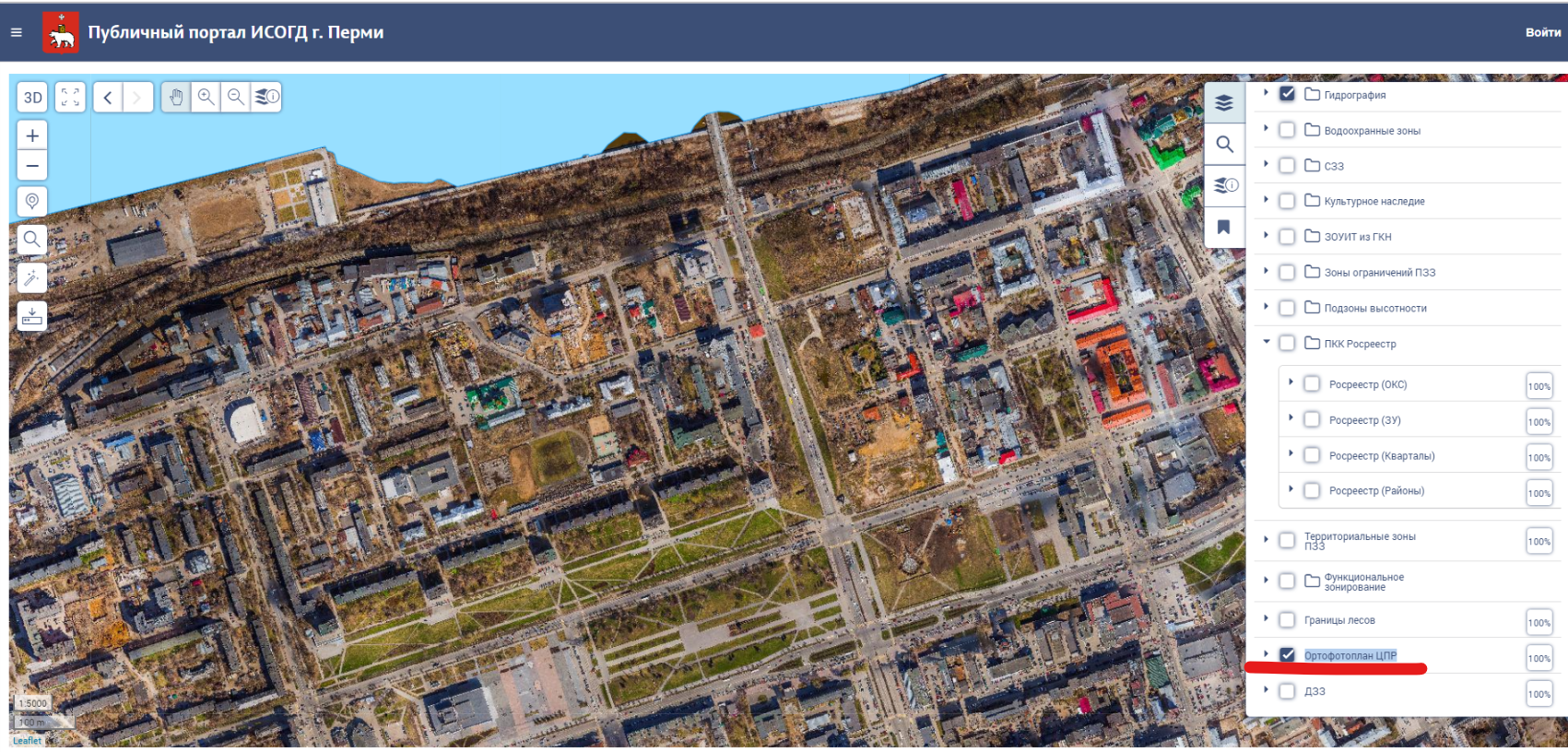 В списке слоев выбрать "Ортофотоплан ЦПР" |
