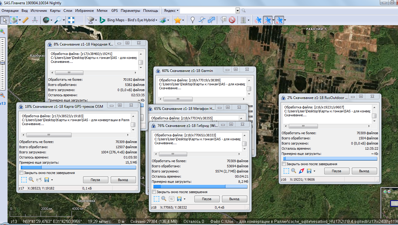 И да, судя по скриншоту, вы качаете карты в папку на рабочем столе. Возможно и SAS там же стоит. Отсюда вопрос - а достаточно ли места на дисках, куда установлена SAS и где лежит кэш? |