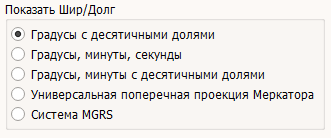 Может просто примеры убрать и сделать более читаемые названия, по примеру, как в GoogleEath: - градусы с десятичными долями - градусы, минуты с десятичными долями - градусы, минуты, секунды и галочку добавить: не подписывать Север/Восток. |