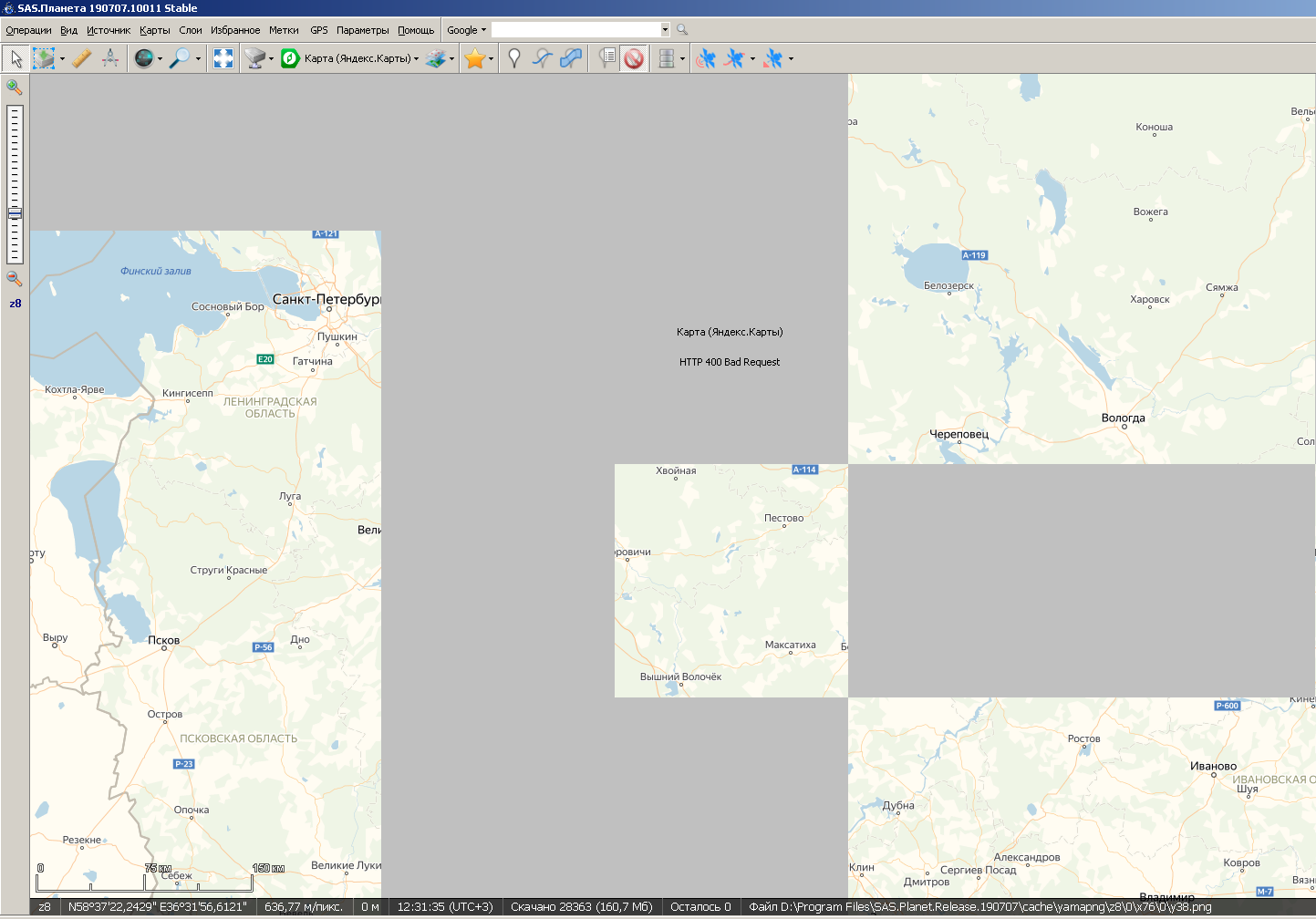 | Description | Для Яндекс.Карт не всегда подгружаются тайлы, на месте незагруженного появляется надпись "Карта (Яндекс.Карты) HTTP 400 Bad Request". Попытки принудительной загрузки тайла через ПКМ выдают такую же ошибку. Проявляется на разных масштабах, удаление файлов кэша не помогает. Скриншот цепляю. При просмотре трафика tcpdump-ом видно следующее: ---8<--- 12:12:31.793703 IP x.x.x.2.61830 > 5.45.196.92.80: P 1:239(238) ack 1 win 16567 GET /tiles?l=map&x=76&y=40&z=7&g=Gagari HTTP/1.1 User-Agent: Mozilla/4.0 (compatible; MSIE 7.0; Windows NT 5.1; .NET CLR 2.0.50727) Accept: text/html, */* Host: vec03.maps.yandex.net Connection: Keep-Alive Cache-Control: no-cache 12:12:31.801509 IP 5.45.196.92.80 > x.x.x.2.61830: P 1:218(217) ack 239 win 8 HTTP/1.1 400 Bad Request Server: nginx/1.17.4 Date: Mon, 28 Oct 2019 09:12:35 GMT Content-Type: text/plain Transfer-Encoding: chunked Connection: keep-alive Keep-Alive: timeout=60 16 lang argument missing ---8<--- Host в запросах меняется. В успешных запросах сразу приходит image/png. SAS.Планета 190707.10111 Stable Windows 7 Professional | ||||||||