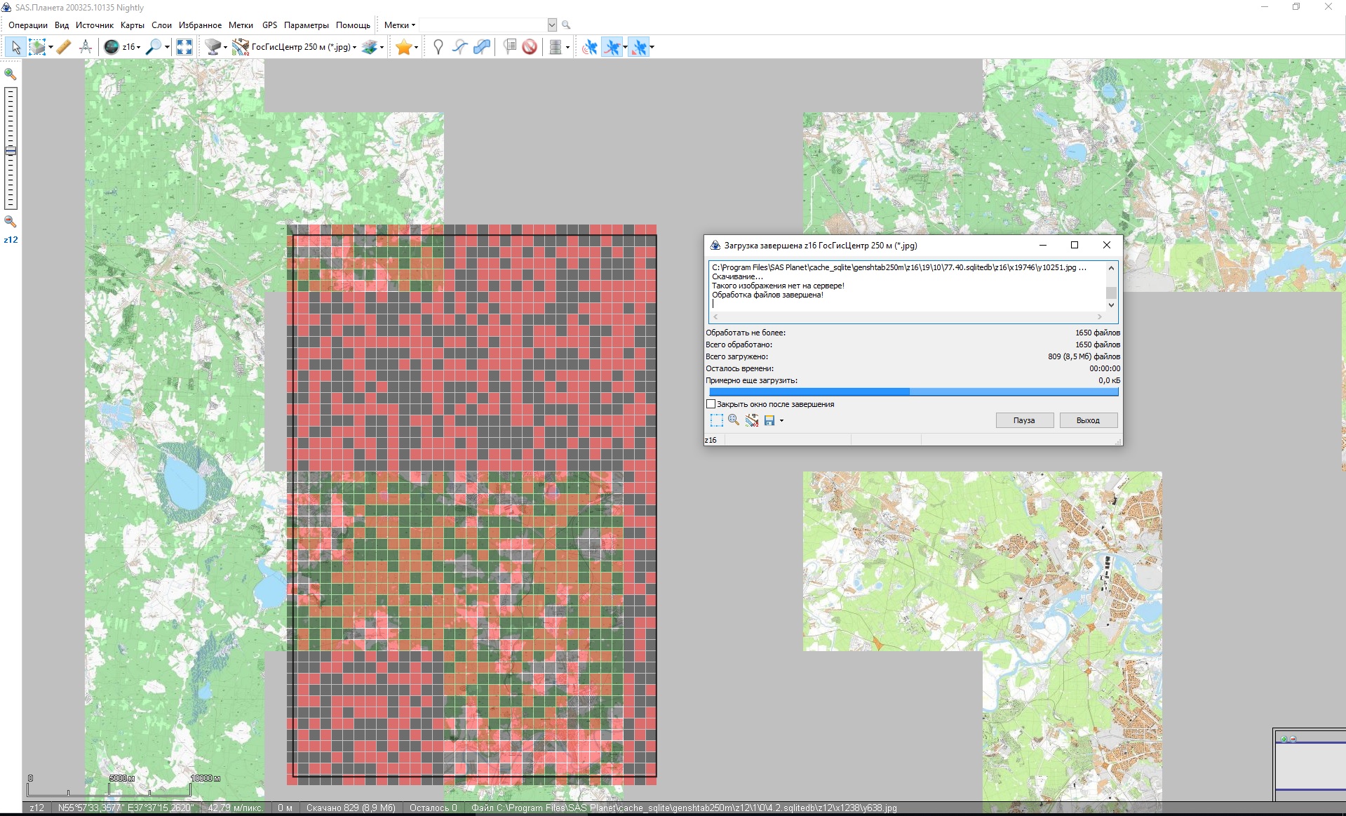 У меня указано: "Для того, чтобы загрузились все тайлы в пределах экрана при серфинге, надо подвигать карту и поизменять зум. Для того, чтобы полностью загрузились все тайлы выделенной области, надо повторить загрузку около 10-15 раз." Из этого делаем вывод: тайл на сервере есть, и сервер этот тайл таки отдает, но с трудом. Теперь, что хочу: хочу, чтобы тайл отдавался либо сразу, либо без моего вмешательства. Почему баг SAS: потому, что идем в настройки: Параметры ⇒ Настройки ⇒ Интернет ⇒ Пытаться повторно загрузить тайл при его отсутствии. Галка эта стоит, но никакого влияния не оказывает. По смыслу, при отмеченной галке SAS таки должна выкачать тайл, который сервер мне в итоге отдает (после моего "ручного управления"). Раз галка не работает - значит баг SAS. Вот принт-скрин второго прохода закачки (сравните с первым проходом - в шапке): https://i.ibb.co/nD612k3/SAS-Problem-2-2.jpg Как видно, при втором проходе "внезапно" "появляются" тайлы, которых на сервере "не было" полминуты назад при первом проходе. |