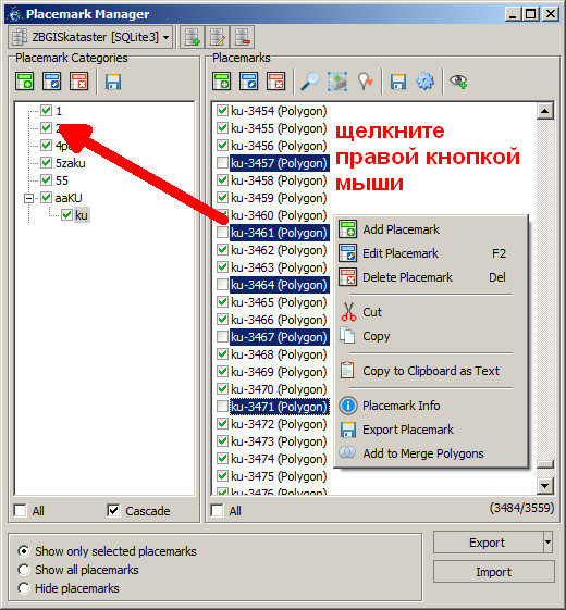 | Summary | 0003741: Placemark manager - adding the option "select all unmarked" to the context menu | ||||||||