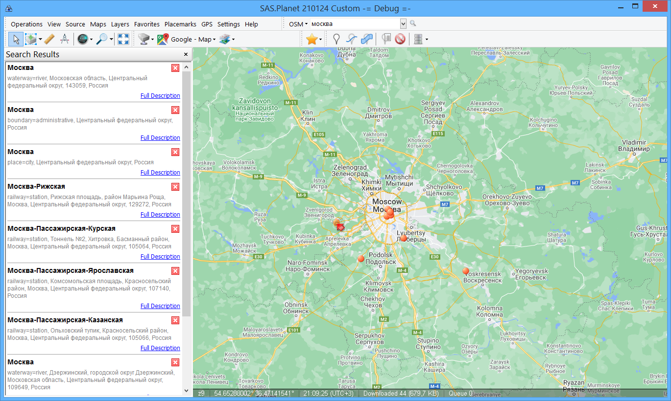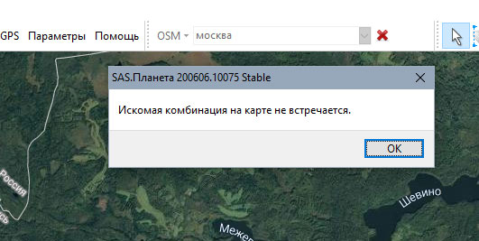 Скачал, попробовал SAS.Planet.Nightly.210124.10112 и основную SAS.Planet.Release.201212. Не работает в обеих. При этом поиск по WikiMapia работает. |