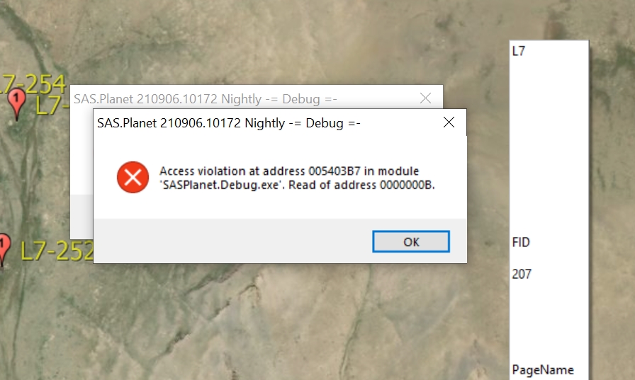 Ещё одна попытка: https://disk.yandex.ru/d/2-NB1eClIbOF_Q - скопировать оба файла в папку с ночной сборкой - воспроизвести ошибку - сделать скриншот ошибки - прислать скриншот и файл SASPlanet.Debug.log - на этот раз лог будет тут. |