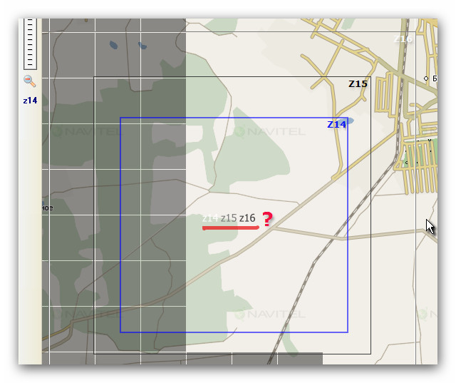 Кстати вы неправильно на рисунке подписали. Синий прямоугольник не относиться ни к какому зуму. Черным это 16-й зум, серым 15-й, а белым 14-й кстати цвет прямоугольника соответствует цвету надписи. |