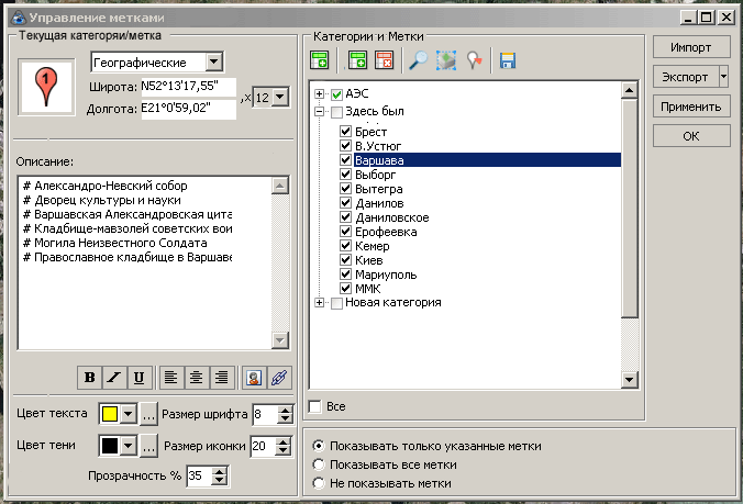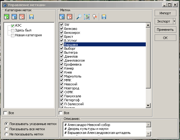 | Description | Позволит не вызывать каждый раз диалог "изменить метку" для просмотра описания. Облегчит работу с большим списком импортированных меток. | ||||||||