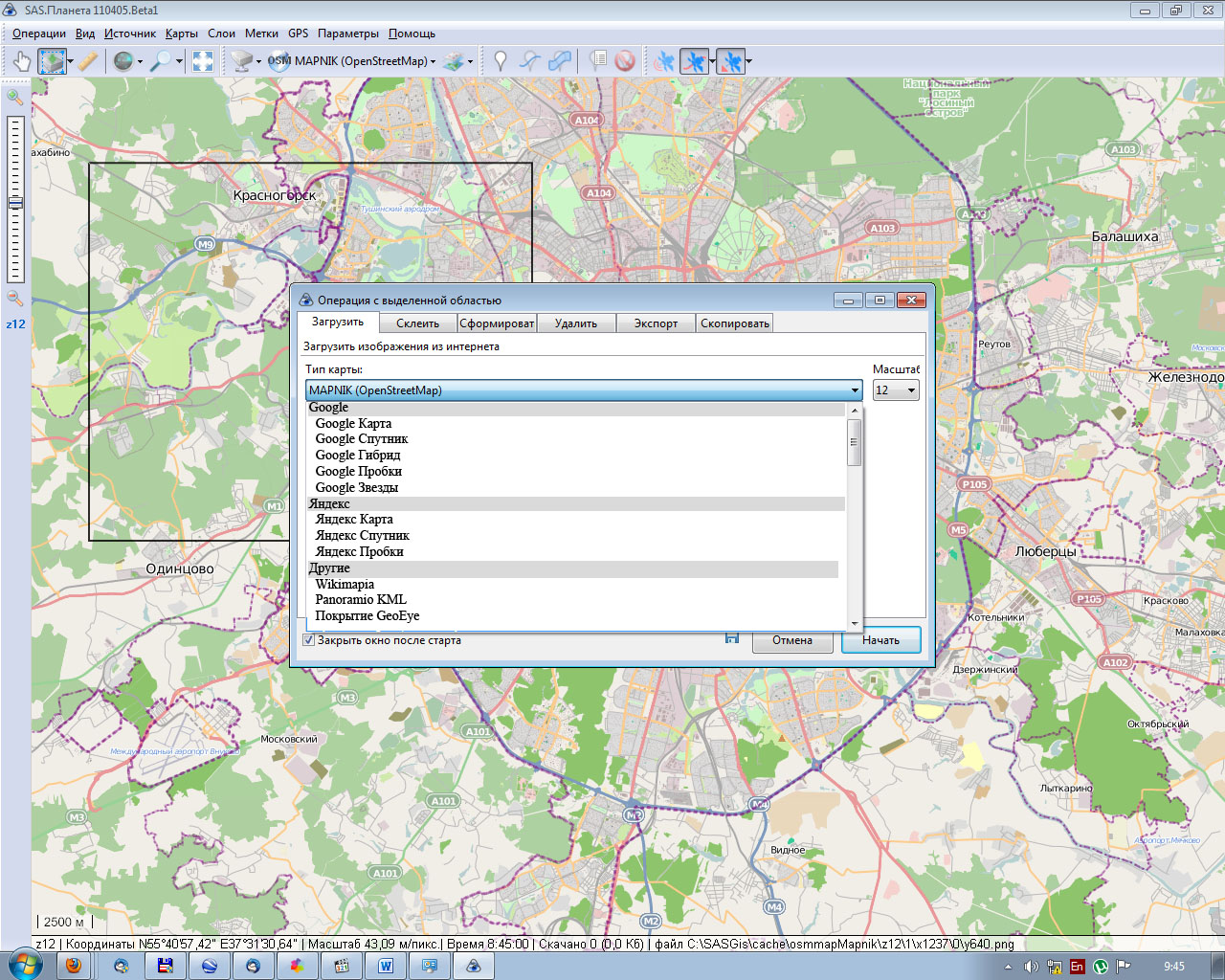 Было бы удобнее, если бы карты в окне "Операция с выделенной областью" располагались в соответствии с сервисами (Yandex Карты/Спутник/Пробки рядом, Google Карты/Спутник/Ландшафт/Марс/Луна и т.п. тоже рядом).