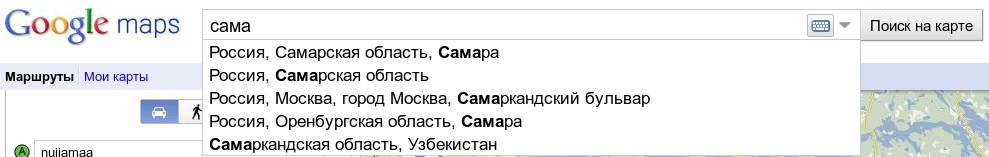 Я у себя эту функцию заблокировал где только можно :-) Но это вопрос личных вкусов. Там по каждому чиху в строке ввода отправляется запрос на сервер, после чего сервер возвращает список пунктов, который и вставляется в эту выпадающую простыню. Проблемки в реализации: Во-первых, каждый ответ придется парсить, поскольку формат данных не родной. С учётом того факта, что разработчикам не хочется парсить даже все результаты поиска, кроме первого, и делать их список (тикет 84), сильно сомневаюсь, что они возгорят желанием реализовывать подобный алгоритм для проходной, в общем-то, фичи. Во-вторых, всё-таки неясно, как это будет выглядеть вкупе с историей. Пытаюсь представить и получается какая-то каша. |
